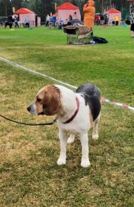 Ristiinassa pidettiin kaikkien rotujen näyttely 9.7.2022. Arto hoiti talkootyönä näyttelyn raha-asioita ja Annamarikin talkoili aamupäivän, mutta iltapäivällä Ruttu ja Vimma osallistuivat näyttelyyn yhdessä Rutun kahden muun pennun kanssa. Tuomarina toimi Sakari Poti. Tulokset olivat hyvät ja olisimme päässeet niillä kasvattajaluokkaan, mutta ”kokenut” kehäkettu Annamari myöhästyi Rutun kanssa kehästä, joten Ruttu sai kyllä laatuarvostelun, mutta emme päässeet kilpailemaan eteenpäin. Sinänsä onnellinen sattuma, sillä juuri beaglein esittelyn aikana satoi paljon, joten Valtsun ja Lunan kotiväet kastuivat pahasti eikä monen tunnin odottelu loppukilpailuihin olisi houkutellut.