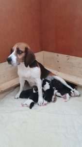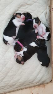 Keskellä pannalliset pienemmät tytöt (eka ja pikkumusta), vas. ja alhaalla isommat (valkopylly, ehkä-Hippa ja isomusta) ja oik. ainoa uros.