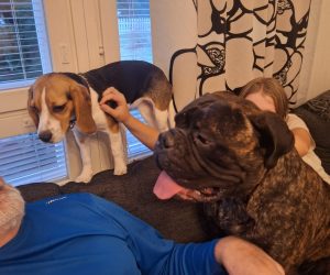 Pennut täyttävät tänään puoli vuotta. Tytöt painavat 9-10 kg ja Jope pari kiloa enemmän. Meidän Hippa jäänee aika pieneksi. Se on selvästi murkkuikäinen eli hormonit sekoittavat päätä. Onneksi sisäsiisteys näyttäisi säilyvän. Hippa ja ainakin Terttu ovat kovia leikkimään leluillaan. Hippa koettelee vanhempien koirien hermoja, tosin Ruttua se ei uskalla paljoa härnätä.