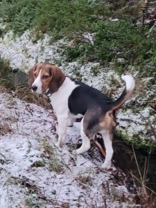 Arto on järjestänyt Hipalle lähikontakteja jänisten ja muutaman kaadon kanssa. Se innostuu kovasti, mutta ei ole vielä löytänyt omaa jänistä. Samaa kertovat muidenkin pentujen omistajat. Alla kuvia Hipasta: