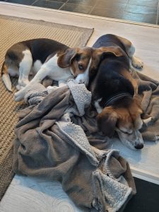 Kaikille kasvateille kuuluu hyvää! Vimman viimevuotiset pennut ovat kovasti metsästysintoisia. Loviisan Tyyneä ovat haitanneet pakkasten lisäksi sudet, mutta jänisajoja on ollut, kaatoja ei. Peuraa se oli karkottanut liiankin pitkään: