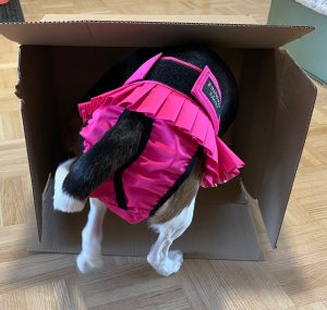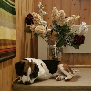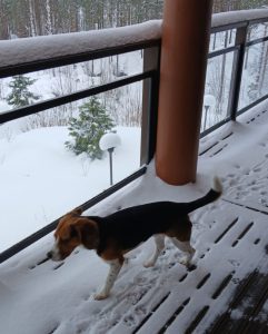 Meidän Hipan metsästysinto on saanut siitä otteen niin, ettei sitä meinaa saada metsästä pois. Ihmeen taitavasti se on saanut jäniksiä liikkeelle, mutta ajotaito ei vastaa intoa. Peuraakin se kerran ajoi, mistä isäntäväki ei innostunut. Jänistä se pääsi maistamaan vain Vimman kaadoille.